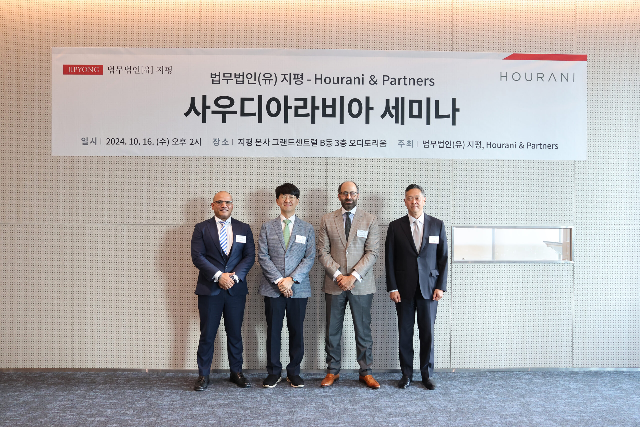 On October 16, 2024, Hourani & Partners and Jipyong LLC jointly hosted an insightful seminar focusing on Saudi Arabia’s evolving business environment. The event aimed to foster cross-border collaborations between South Korea and Saudi Arabia, bringing together business leaders and legal experts from both regions.